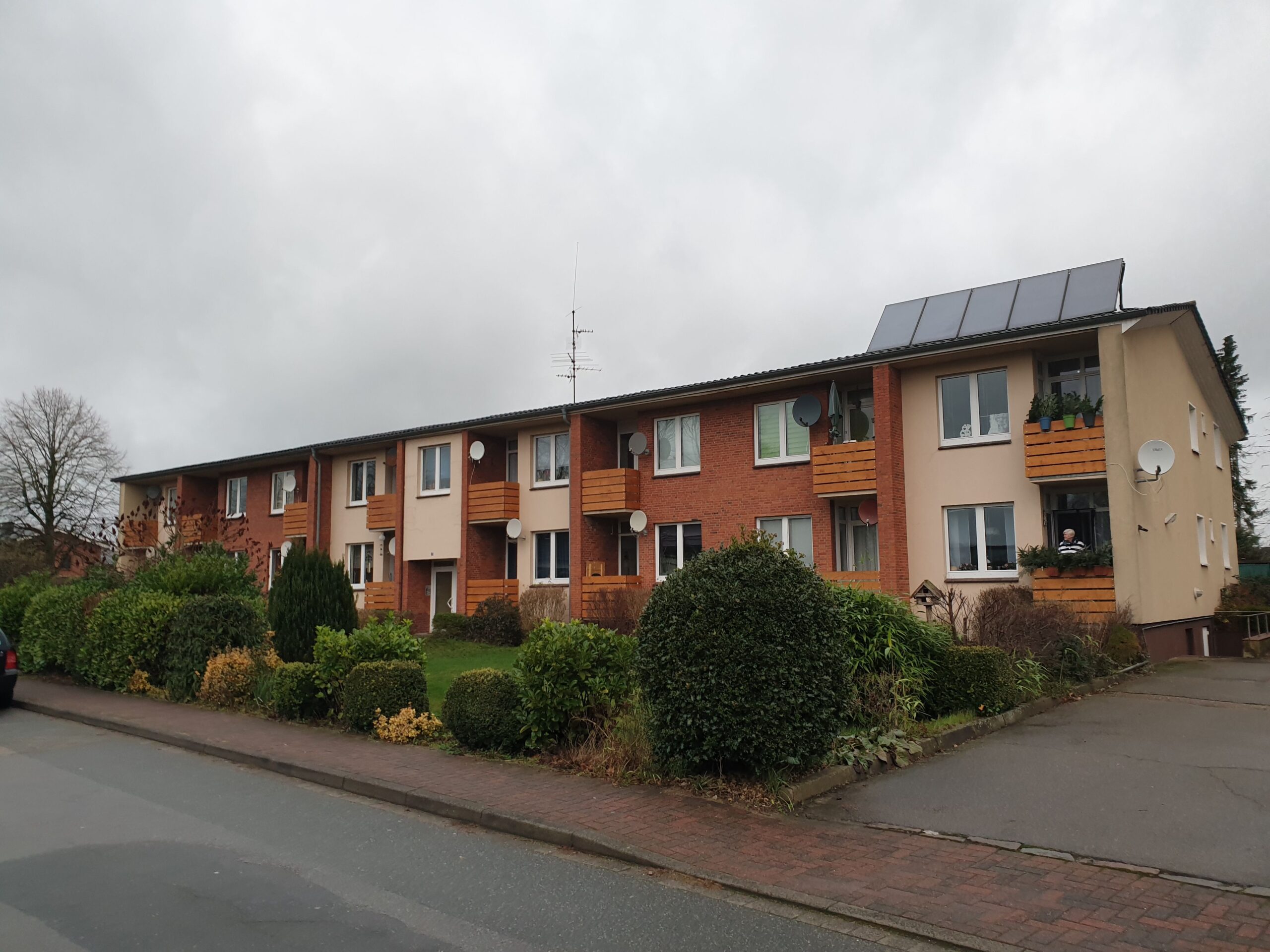 In Aukrug befindet sich dieses Mehrfamilienhaus im grünen in einer Einfamilienhaus-Siedlung mit 15 Wohnungen, welche alle einen Balkon oder Terrasse haben.