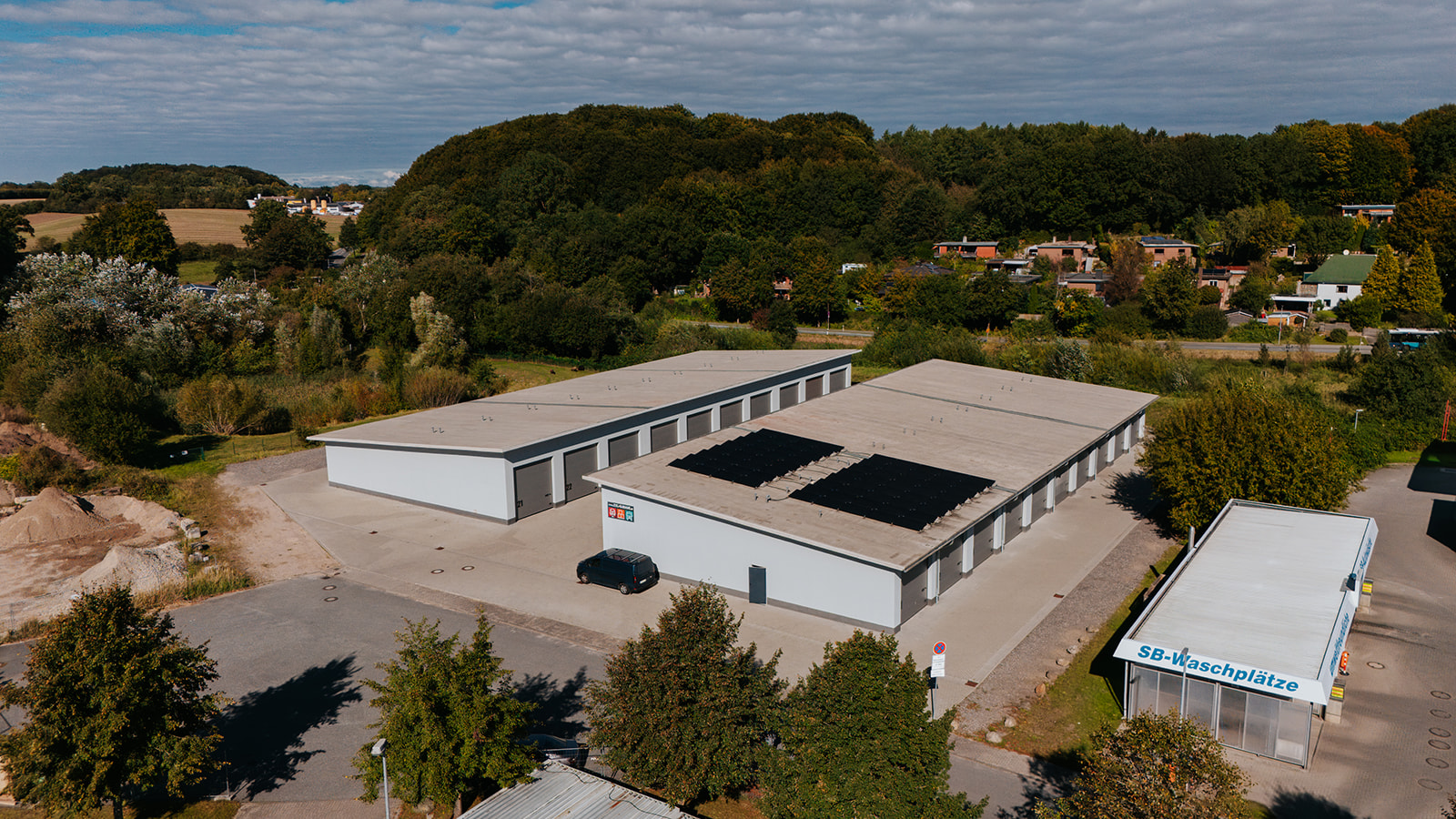Hier sind in Flintbek nahe Kiel im Jahr 2022 40 XXL-Garagen für Handwerker und Privatleute entstanden.